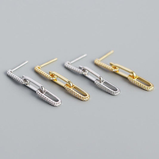 Geometry Hollow Ellipse Chain 925 Sterling Silver Hoop Earrings