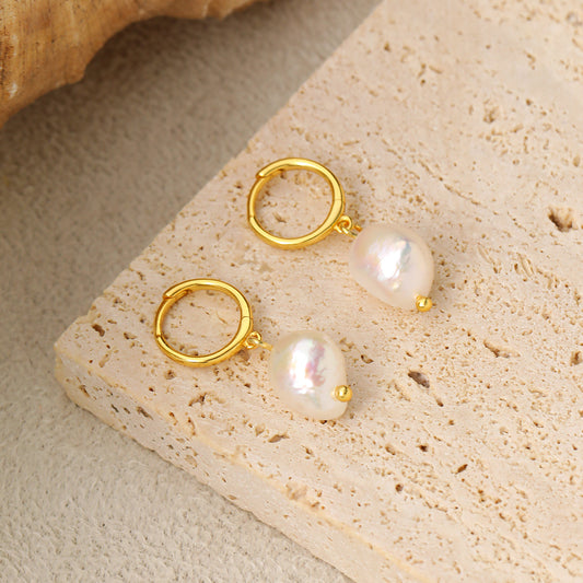 Casual Baroque Irregular Natural Pearl 925 Sterling Silver Dangling Earrings