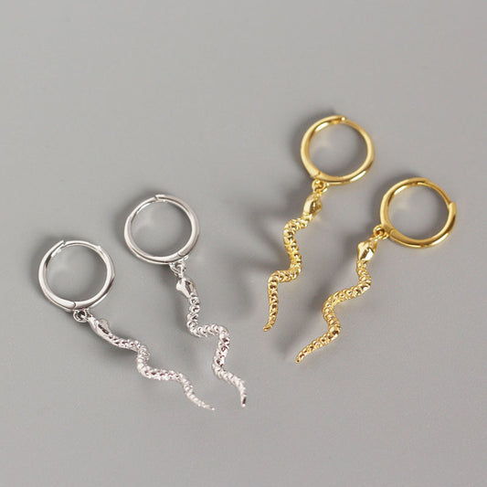 Snake Wave Dangling 925 Sterling Silver Hoop Earrings